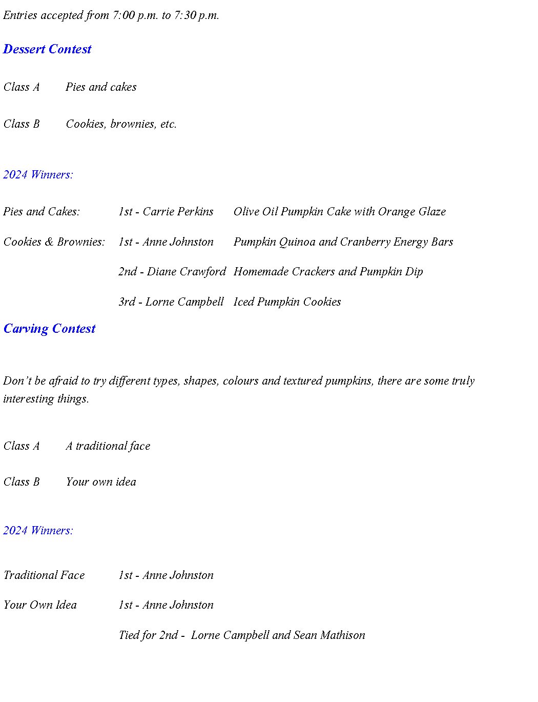 Pumpkin Dessert and Carving Contest October 21st